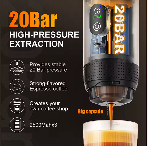Cafetera Espresso Portátil con Pantalla LED