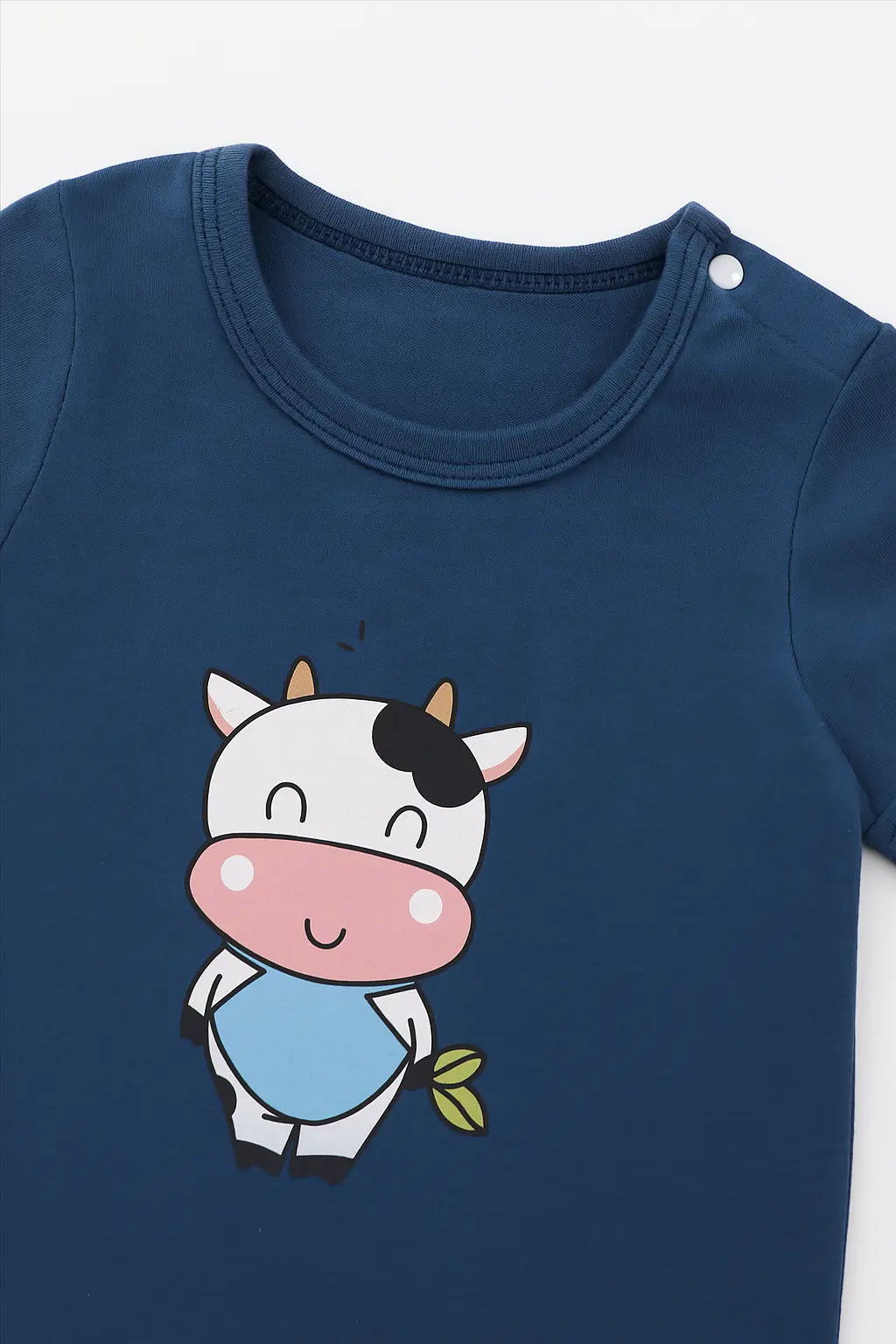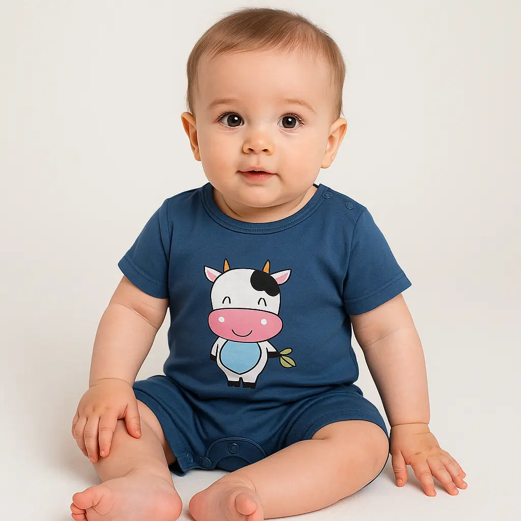 Mameluco Unisex de Algodón con Estampado de Vaca – Azul Marino