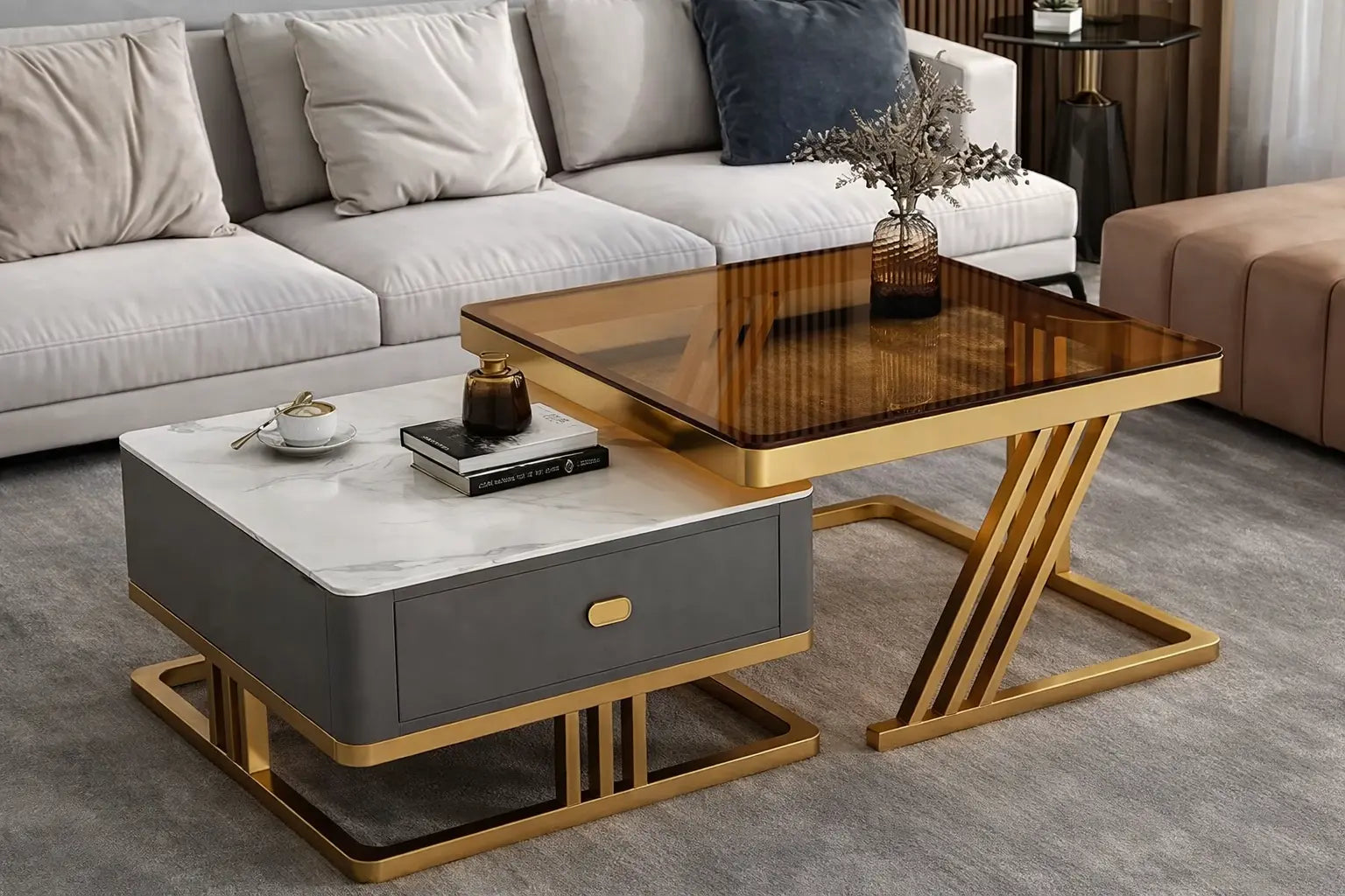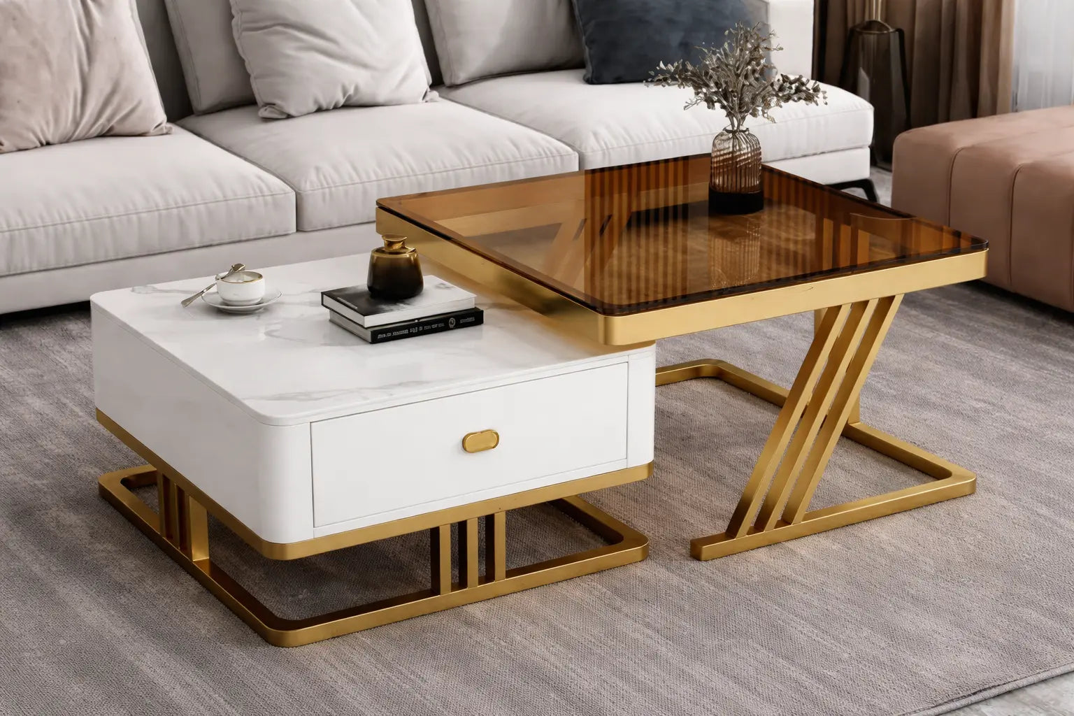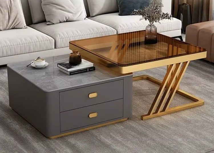 Mesa de Café Moderna de Vidrio con Estructura Metálica 70+60 cm