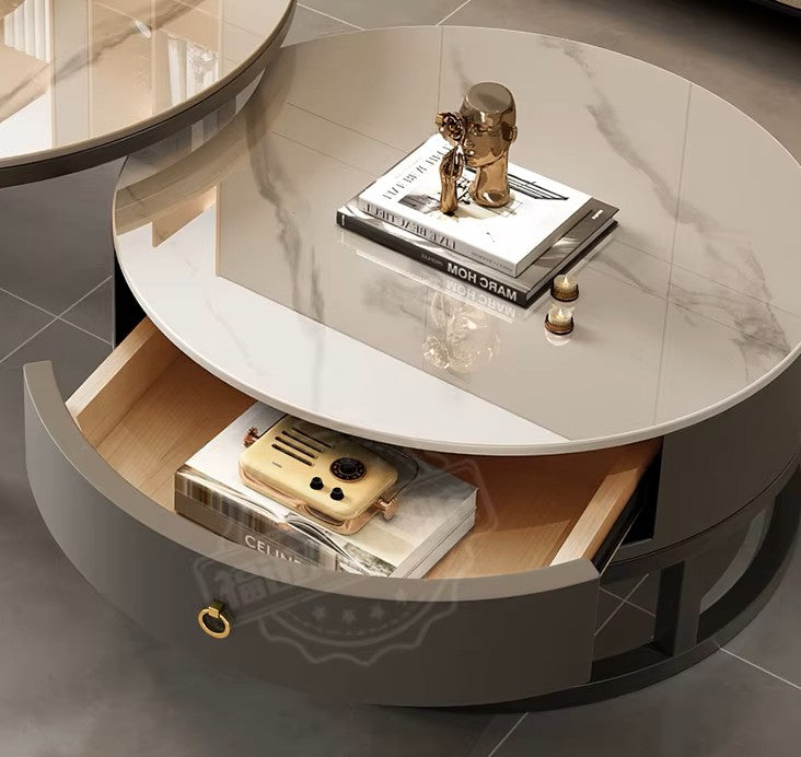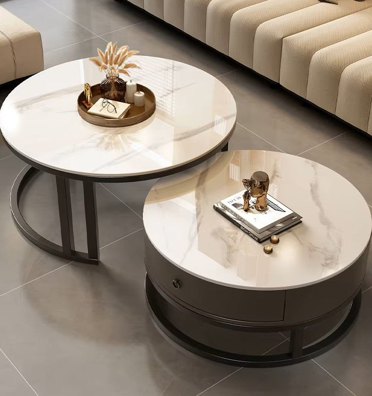 Mesa de Centro Moderna de Mármol con Estructura de Acero y Almacenamiento 70+50cm