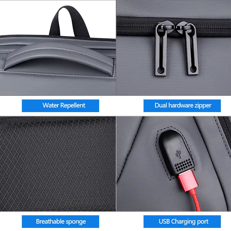 Mochila Portátil Impermeable con Puerto USB y Compartimento para Laptop
