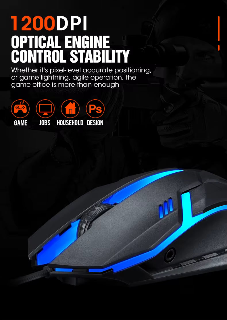 Mouse Gamer Cableado con Retroiluminación LED y 1200 DPI